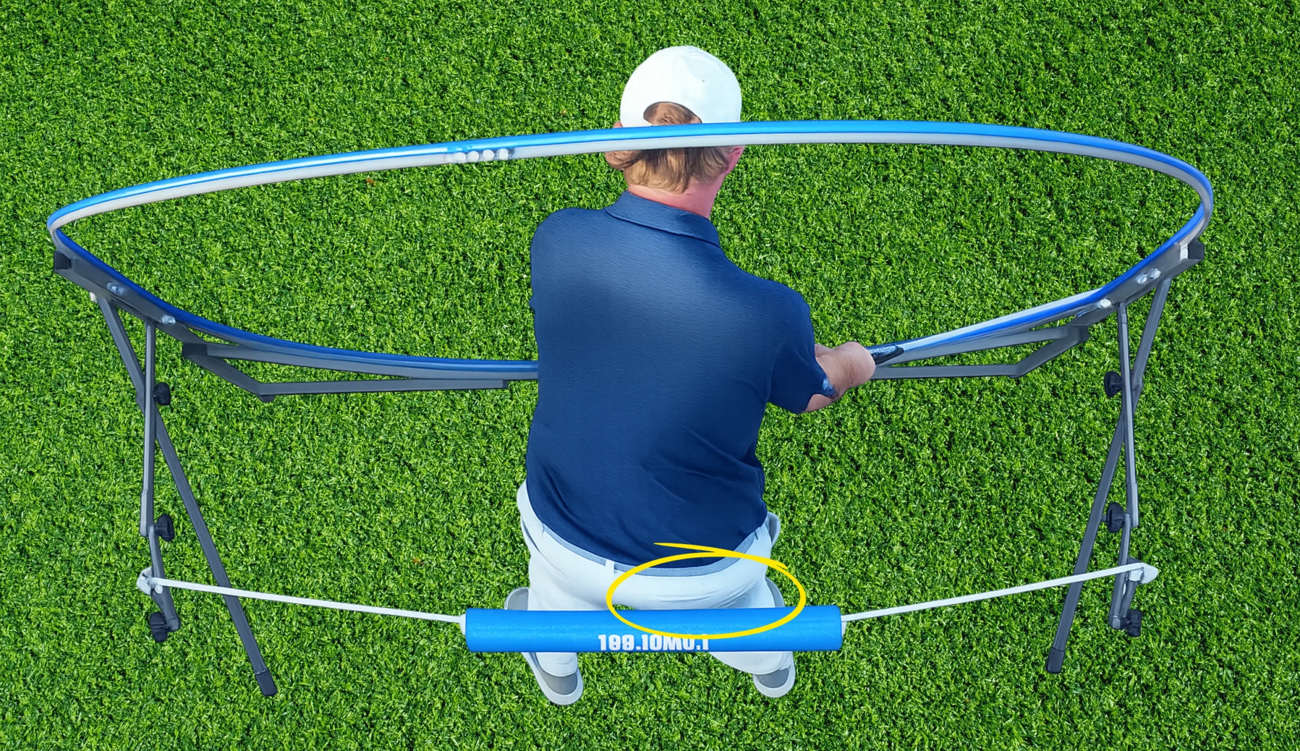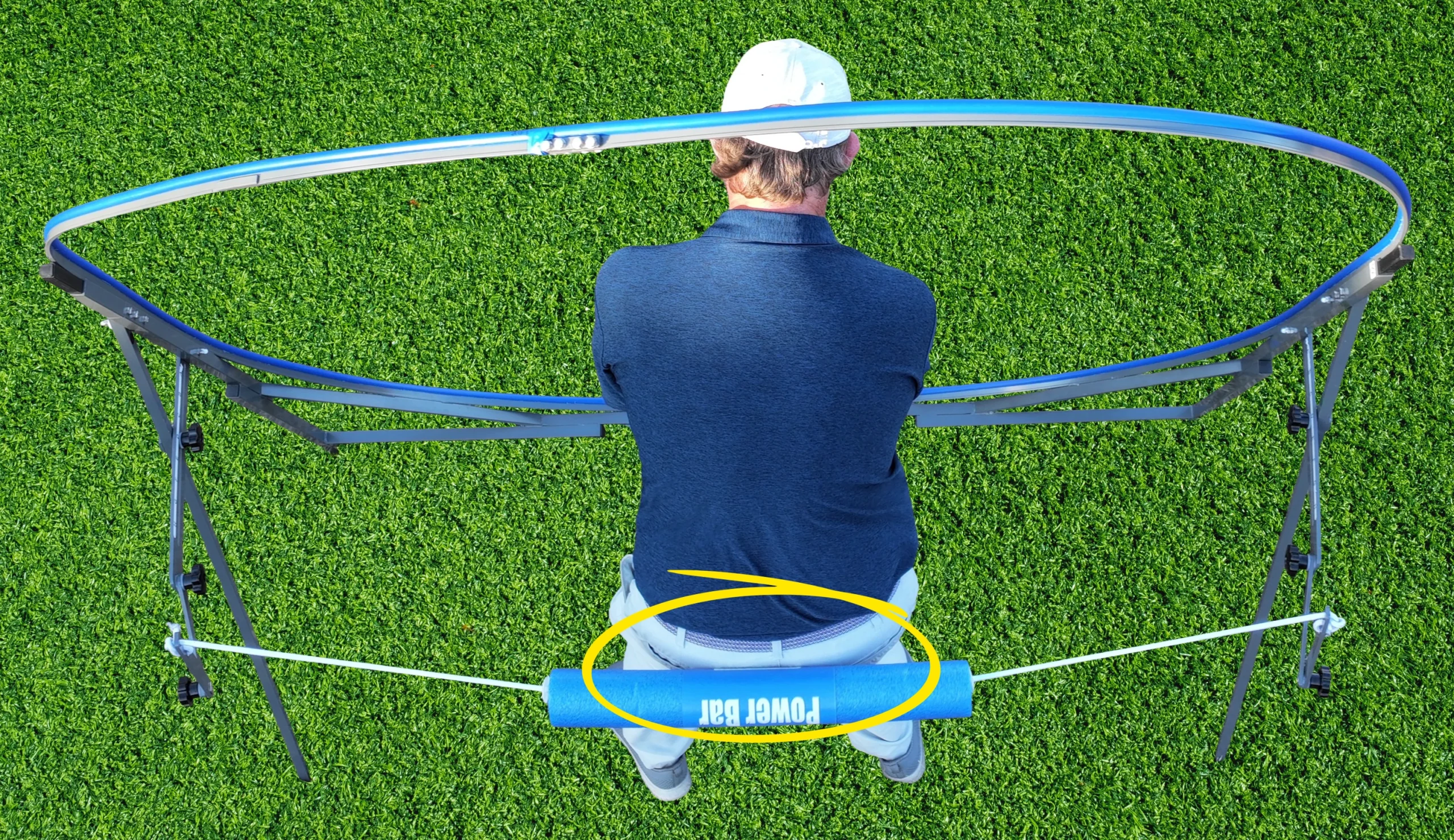 Create the Space. At the top of your swing, the POWER BAR acts as a wall. By keeping your Glutes against the BAR, you create the “deep hip” position that allows your arms to drop into the slot effortlessly.
